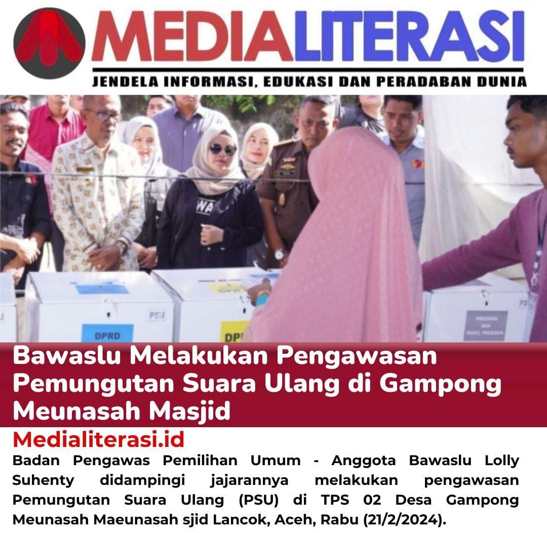 Medialiterasi.id | PIDIE JAYA – Badan Pengawas Pemilihan Umum – Anggota Bawaslu Lolly Suhenty didampingi jajarannya melakukan pengawasan Pemungutan Suara Ulang (PSU) di TPS 02 Desa Gampong Meunasah Meunasah Masjid Lancok, Aceh pasca viral nya video salah satu oknum caleg DPRK memasukkan sekantong plastik surat suara ke kotak suara dengan nada mengancam.
