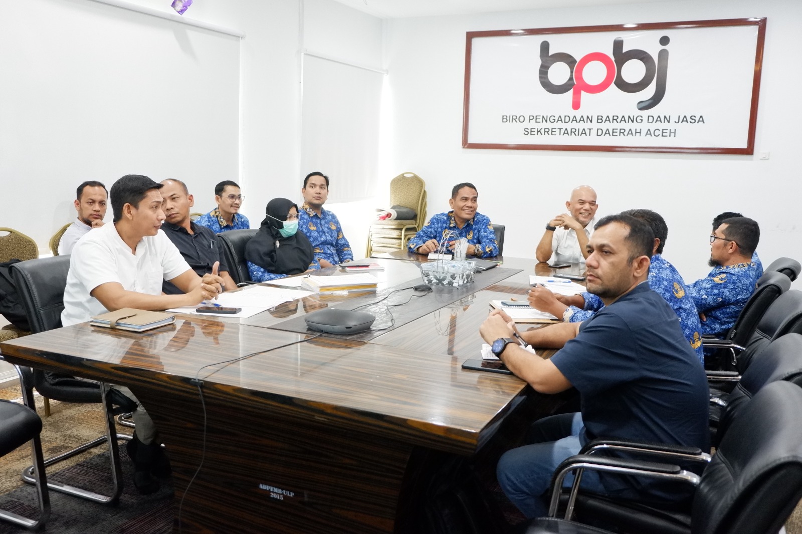 Plt. Kepala Biro PBJ, Said Mardhatillah, S.STP., MM, diwakili oleh Kabag Pengelolaan Pengadaan, Ir. Afria, dengan moderator Kabag Advokasi, Aswansyah Putra, S.Hut., M.Si.
