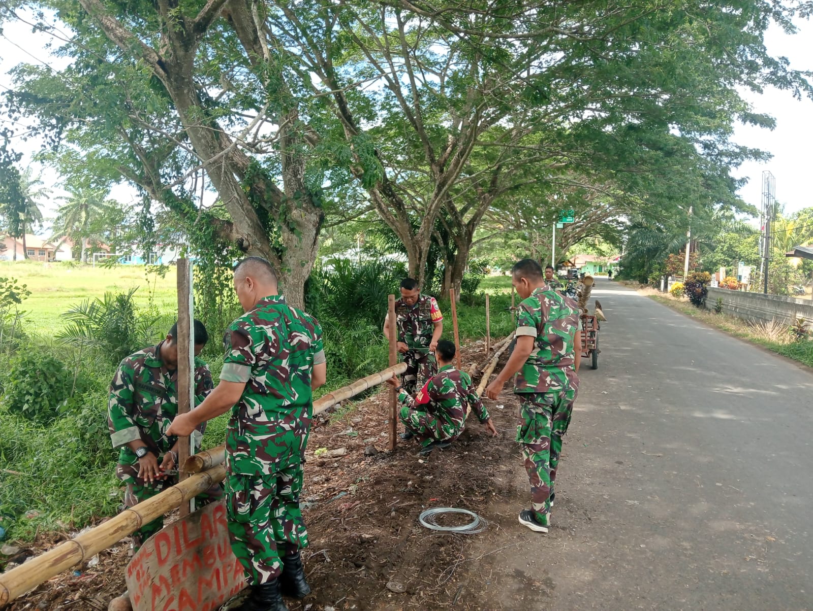 Di lokasi pembuangan sampah, Koramil 02/Kuta Makmur juga telah melakukan pemagaran serta memasang imbauan larangan membuang sampah.