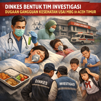 MEDIALITERASI.ID | ACEH TIMUR – Dinas Kesehatan Kabupaten Aceh Timur membentuk tim investigasi untuk menelusuri dugaan gangguan kesehatan yang dialami balita dan pelajar usai mengonsumsi menu Program Makan Bergizi Gratis (MBG) di Desa Bandar Baro dan Desa Blang Nisam, Kecamatan Indra Makmu, Jumat (23/1/2026).