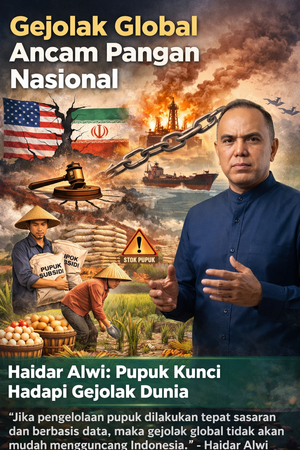 MEDIALITERASI.ID | JAKARTA – Haidar Alwi menekankan pentingnya penguatan ketahanan pupuk dan pangan nasional di tengah meningkatnya ketidakpastian global. Hal ini menyusul gagalnya perundingan antara Amerika Serikat dan Iran yang berlangsung selama 21 jam di Islamabad, Pakistan.