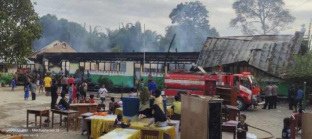 MEDIALITERASI.ID | ACEH UTARA – Kebakaran hebat menghanguskan bangunan SD Negeri 5 Kuta Makmur, Kabupaten Aceh Utara, Jumat (23/1/2026) sekitar pukul 15.30 WIB. Sedikitnya tiga ruang kelas, kantor guru, ruang kepala sekolah, dan ruang perpustakaan ludes terbakar. Kerugian materi ditaksir mencapai sekitar Rp650 juta. Tidak ada korban jiwa dalam peristiwa tersebut.