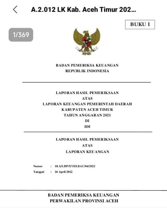 MEDIALITERASI.ID | ACEH – Temuan Laporan Hasil Pemeriksaan (LHP) Badan Pemeriksa Keuangan (BPK) Tahun Anggaran 2021 di Kabupaten Aceh Timur, Provinsi Aceh, yang diduga mengandung indikasi korupsi hingga kini belum ada kejelasan pengusutannya. Ketua Dewan Pimpinan Cabang (DPC) Laskar Anti Korupsi Indonesia (LAKI) Aceh Timur, Saiful Anwar, mengungkapkan kepada wartawan bahwa upaya penanganan kasus ini oleh Kejaksaan Tinggi (Kejati) Aceh terkesan mandek.