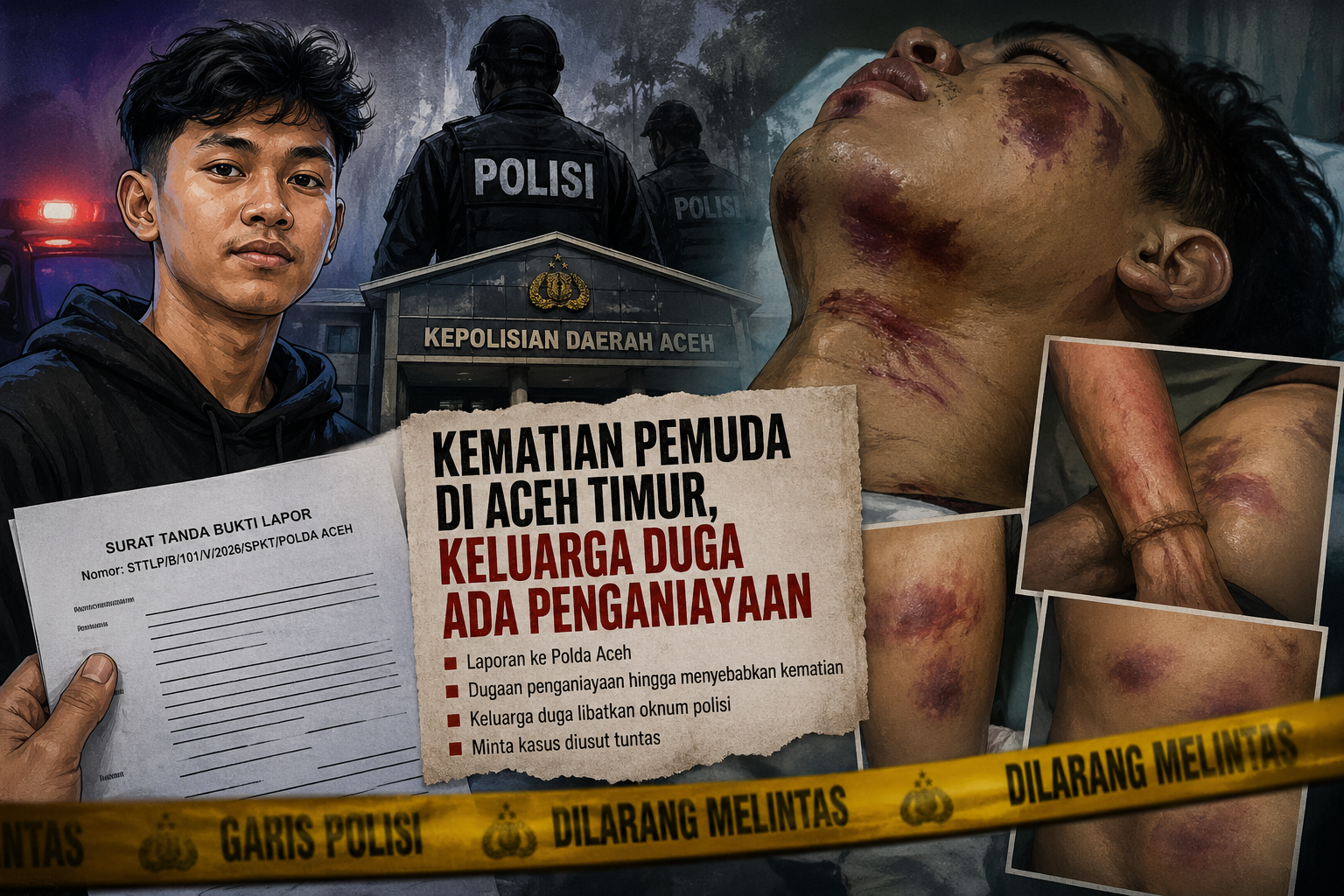 Laporan tersebut disampaikan melalui kuasa hukum keluarga, Zaid Al Adawi, S.H., pada 24 April 2026 dan telah diterima dengan Surat Tanda Bukti Lapor Nomor: STTLP/B/101/V/2026/SPKT/POLDA ACEH.