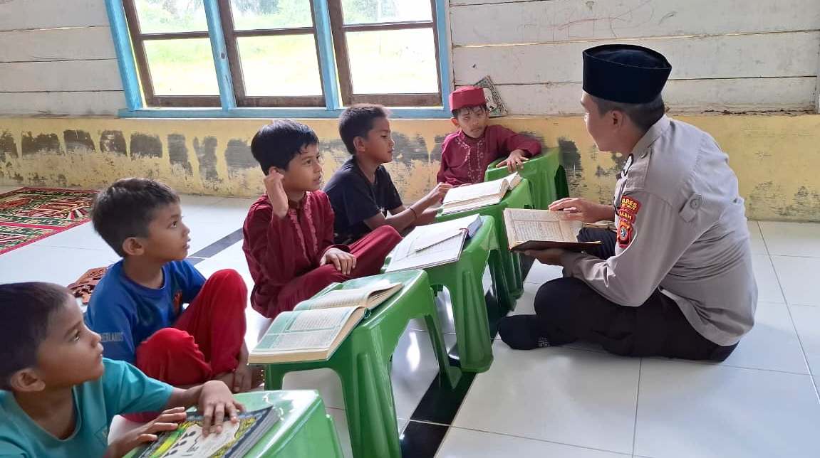 Menjelang Maghrib, Personel Polsek Simpang Jernih Ajarkan Mengaji, Dekatkan Polisi dengan Generasi Bangsa