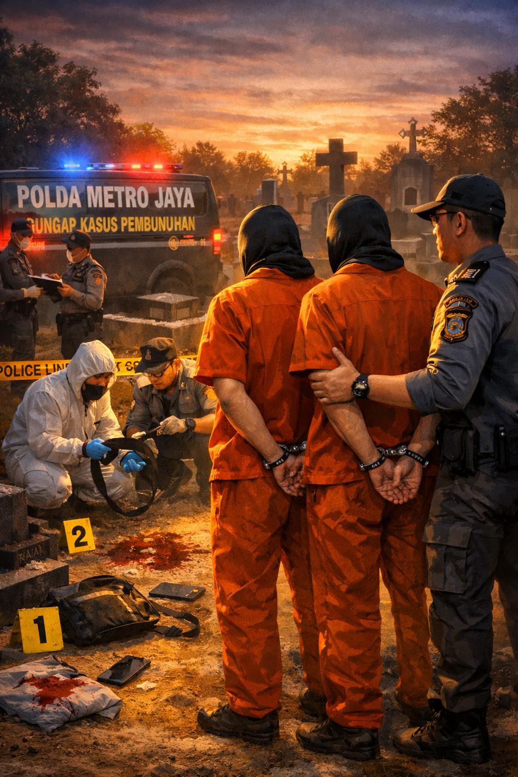 MEDIALITERASI.ID | BEKASI – Polda Metro Jaya mengungkap kasus dugaan tindak pidana pembunuhan yang terjadi di Tempat Pemakaman Umum (TPU) Kompleks Jakasampurna, Kecamatan Bekasi Barat. Dalam kasus tersebut, polisi menangkap dua orang pelaku berinisial JP dan G.