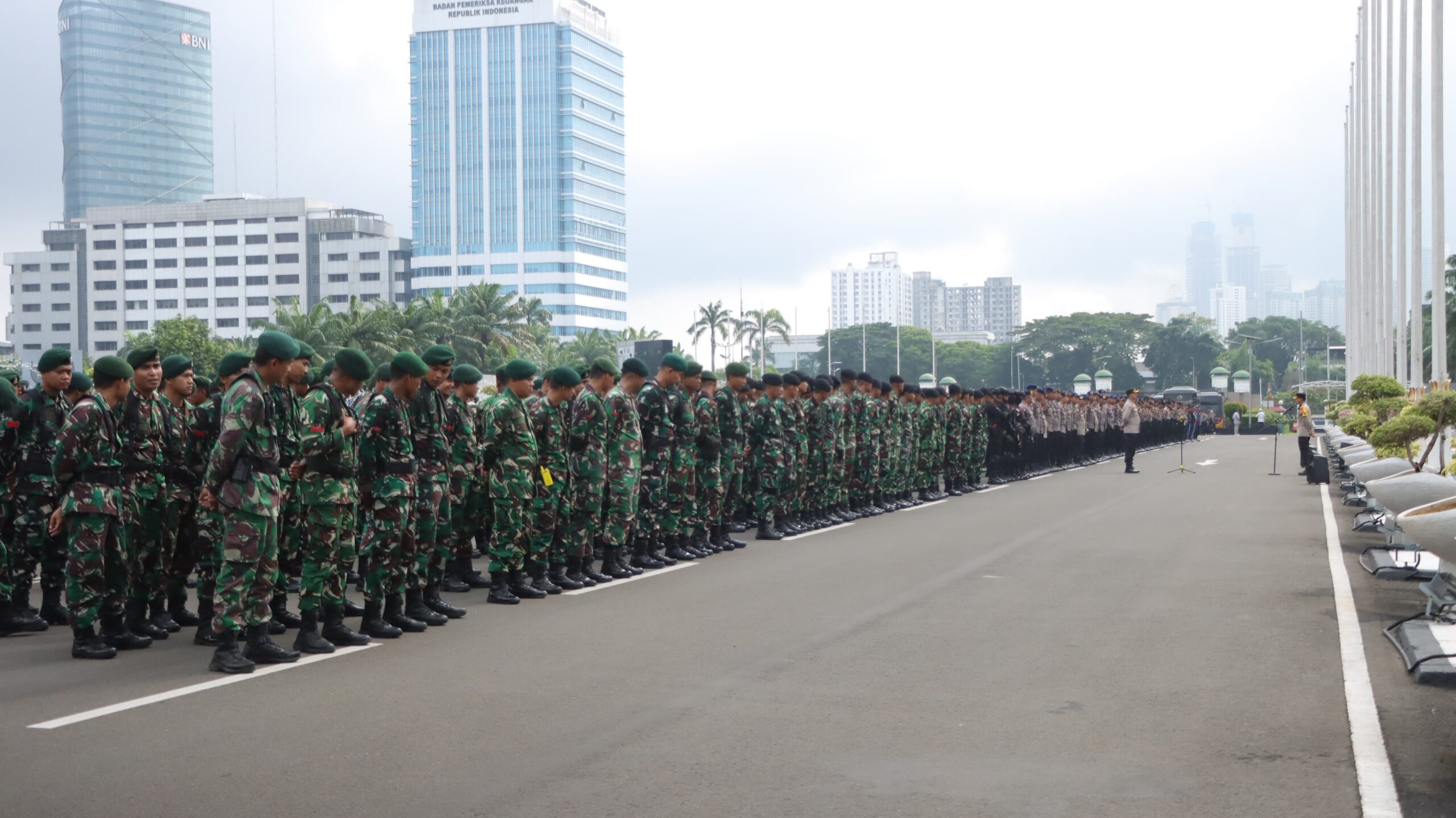 Personel gabungan tersebut berasal dari Polda Metro Jaya, Polres Metro Jakarta Pusat, TNI, Pemda DKI, dan instansi terkait. Mereka ditempatkan di sejumlah titik sekitar Gedung DPR RI guna memastikan jalannya aksi tetap kondusif.