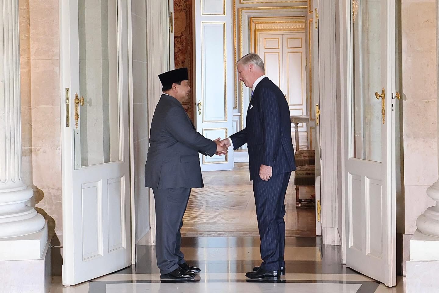 MEDIALITERASI.ID | BELGIA — Presiden Republik Indonesia Prabowo Subianto melakukan pertemuan bilateral dengan Raja Belgia, Yang Mulia Raja Philippe, di Istana Laeken, Brussels, pada Minggu sore, 13 Juli 2025. Pertemuan ini berlangsung dalam rangka mempererat hubungan antara Indonesia dan Belgia, khususnya di bidang strategis dan kerja sama bilateral. Brusel (14/07/2025)