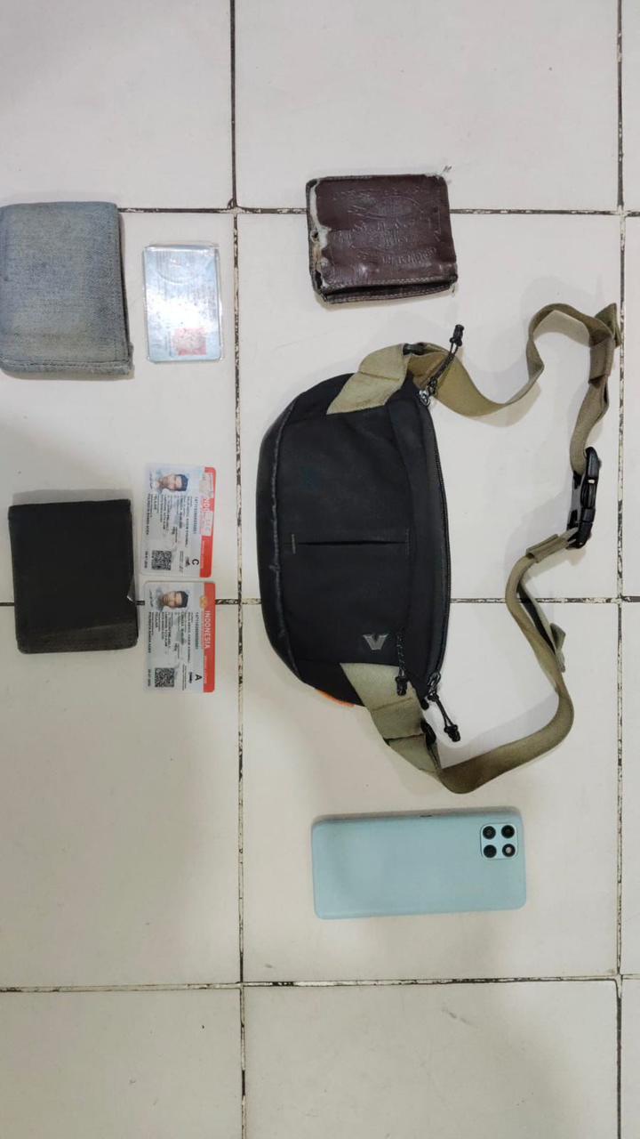 Polisi menyita barang bukti berupa satu tas selempang, satu unit ponsel Infinix Smart 6 HD warna Origin Blue beserta pengisi daya, dan tiga dompet berisi identitas korban.
