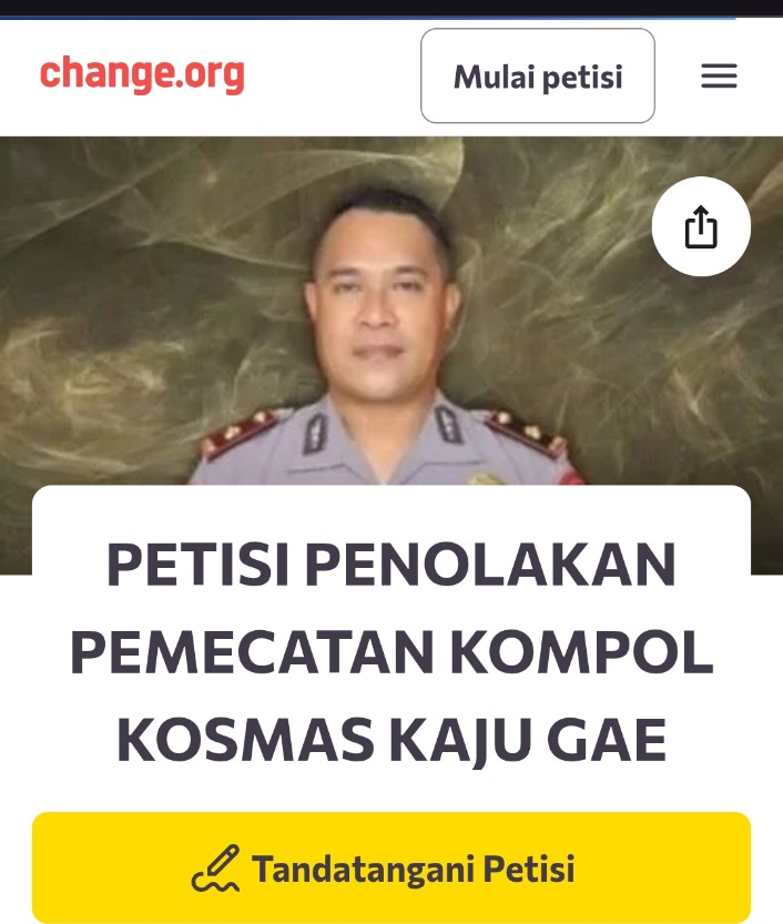 Petisi yang digagas Mercy Jasinta melalui platform change.org itu ditujukan kepada Kapolri, Komisi Kode Etik dan Profesi (KKEP) Polri, serta pimpinan DPR RI. Dalam isi petisi, masyarakat Ngada, keluarga besar, sahabat, dan pendukung Kosmas Kaju Gae menyebut keputusan pemecatan dianggap tidak adil dan terlalu berat dibandingkan dengan pengabdian panjang sang perwira.
